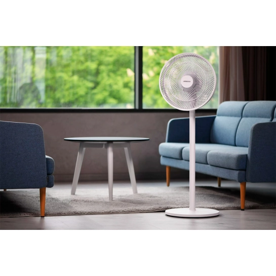 Напольный вентилятор ARDESTO FN-B1140 элегантного белого цвета станет не только эффективным средством охлаждения, но и гармоничным дополнением интерьера. Благодаря компактному размеру (37 × 112 × 37 см) и лаконичному дизайну модель подойдет к любому помещению, а прозрачные лопасти добавляют ощущение легкости и эстетического изящества. Прочная круглая опора обеспечивает устойчивость даже при максимальной скорости работы.