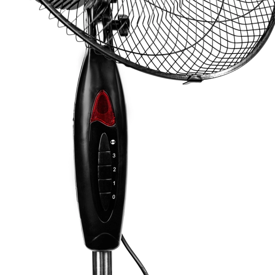 На лицевой стороне вентилятора HFS-1217B расположена кнопочная панель управления со световым индикатором. Интерфейс управления удобный и понятный. 3 скорости вращения позволяют выбрать оптимальную и комфортную для Вас силу обдува. В настройках включена также функция “Автоповорот”.