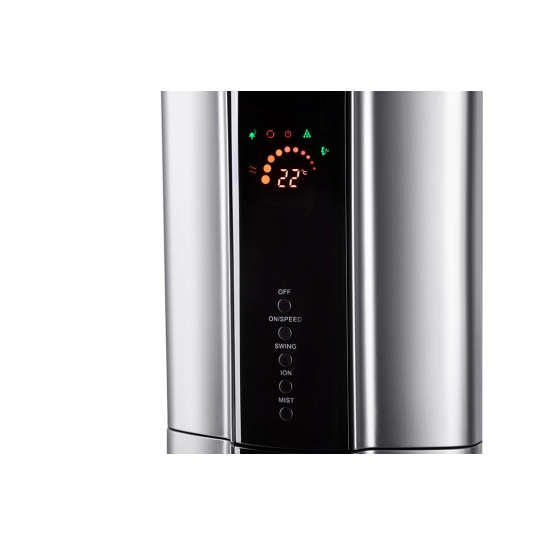 Вентилятор напольный с функцией увлажнения. Для удобного управления предусмотрен дисплей с цветной индикацией и пульт ДУ. Модель выполнена из надежных, практичных и долговечных материалов, а в качестве подставки используется платформа с колесами.