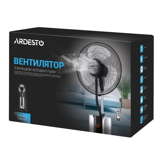 Для управления Ardesto FNM-X2 предусмотрено пять клавиш и LED-дисплей на устройстве, а также удобный пульт ДУ. Мощность вентилятора — 100 Вт, есть три скорости, индикатор температуры, таймер на 9 часов и три режима работы — Normal с регулировкой скорости, Natural с имитацией природного ветра и Sleeping с мягким изменением интенсивности работы. Вращение обеспечивает равномерное распределение воздушных потоков в помещении. Вентилятор устанавливается на платформе с колесами — это обеспечивает устойчивость и возможность удобной транспортировки.