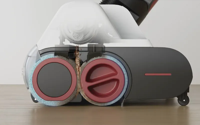 Плавно обведите ножки стула, ножки стола и ноги людей с помощью ловкой чистящей головки. А благодаря двум вращающимся в противоположных направлениях роликам вы можете толкать и тянуть всего одним пальцем.