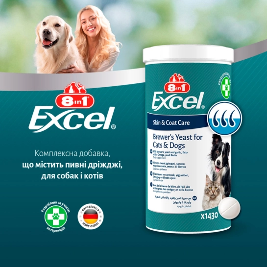 Витамины 8in1 Excel Brewers Yeast для собак и кошек, пивные дрожжи с чесноком, для кожи и шерсти, 1430 шт (661833)