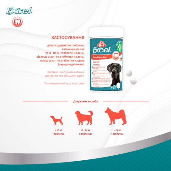 Описание Витамины 8in1 Excel Calcium для щенков и взрослых собак, для зубов и костей, кальций, 155 шт (661826)