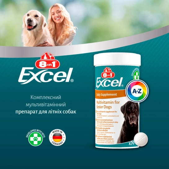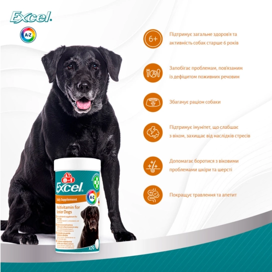 Описание Витамины 8in1 Excel Multi Vitamin Senior для собак пожилого возраста, мультивитамин, 70 шт (661822)