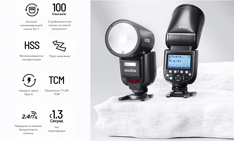 Характеристики для Вспышка накамерная Godox V1 Pro-C (Canon)