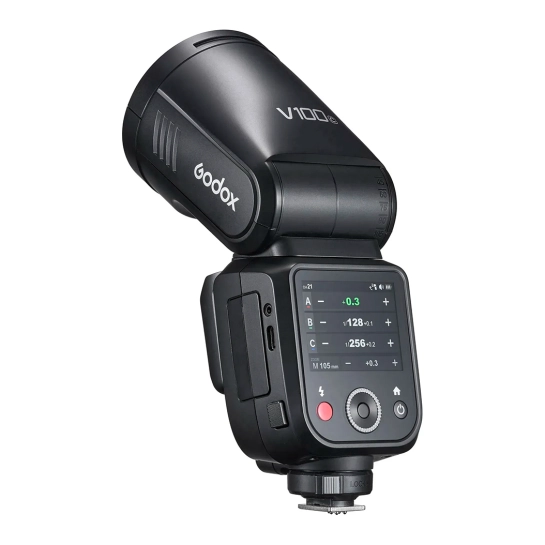 Godox V100 – это камерная вспышка с мощностью 100 Дж, круглая головка и литий-ионный аккумулятор. Эта модель устанавливает новый стандарт для флагманских накамерных вспышек, сочетая передовые технологии и профессиональную производительность.
