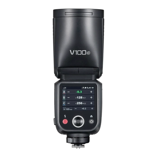 Godox V100 – это камерная вспышка с мощностью 100 Дж, круглая головка и литий-ионный аккумулятор. Эта модель устанавливает новый стандарт для флагманских накамерных вспышек, сочетая передовые технологии и профессиональную производительность.