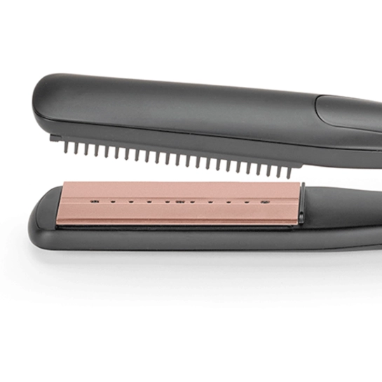 Широкие керамические пластины равномерно распределяют тепло и обеспечивают стабильную температуру на протяжении всей укладки. Два выдвижных гребня аккуратно разделяют пряди, помогая быстро выпрямить даже длинные, густые или сильно вьющиеся волосы. Такая конструкция делает процесс максимально эффективным и сокращает время укладки.