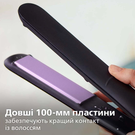 Длинные пластины 100 мм обеспечивают лучший контакт с волосами и позволяют быстрее и легче выпрямлять волосы.