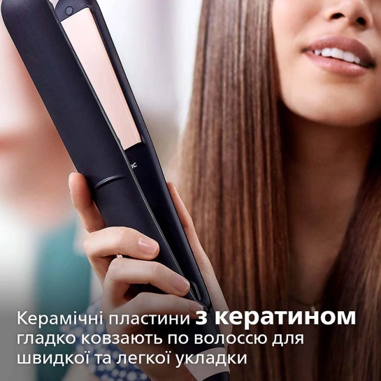 Керамические пластины с кератиновым покрытием легко скользят по волосам, облегчая и ускоряя процесс укладки.