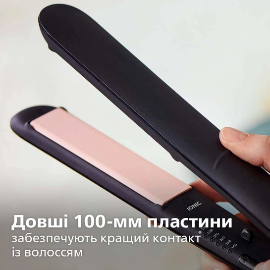 Длинные пластины 100 мм обеспечивают лучший контакт с волосами и позволяют быстрее и легче выпрямлять волосы.