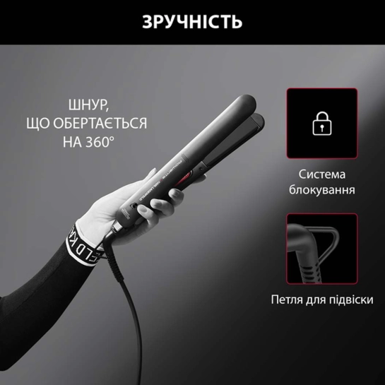 Вращающийся на 360° шнур обеспечивает большую свободу движений для легкой укладки и полного комфорта. Система блокировки пластин обеспечивает безопасное и простое хранение для повседневного удобства.