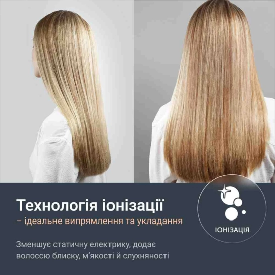 Ионизация уменьшает статическое электричество, делая волосы гладкими, мягкими и послушными, а также придает ему блеск и эластичность.
