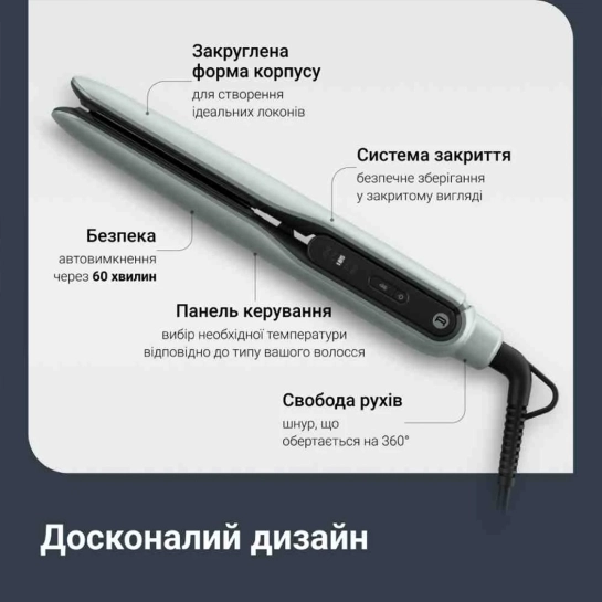 5 температурных режимов от 150 до 230°C, включая режим 230°C для интенсивного выпрямления и 170°C для деликатного ухода и сохранения здорового вида волос.