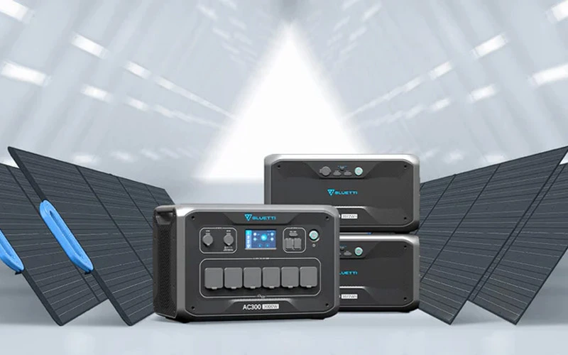 BLUETTI AC300 на 100% модульный и может принимать до 4×B300 (3,072 Втч на блок) батарейных модулей на блок, в общей сложности 12,288 Втч - питание всей вашей семьи для основных нужд в течение дней во время чрезвычайных ситуаций или отключения электроэнергии!