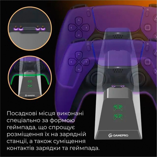 Зарядная док-станция GamePro CHS420B – это идеальное решение для владельцев геймпадов DualSense, сочетающее в себе удобство, функциональность и стильный дизайн. Компактные размеры (127 x 58 x 66 мм) позволяют легко разместить ее на вашем игровом столе, сохраняя порядок и освобождая пространство от лишних кабелей. Черный корпус из качественного пластика прекрасно впишется в интерьер любого геймерского сетапа, гармонируя с дизайном вашей PlayStation 5.