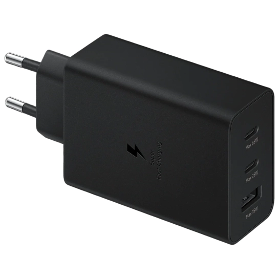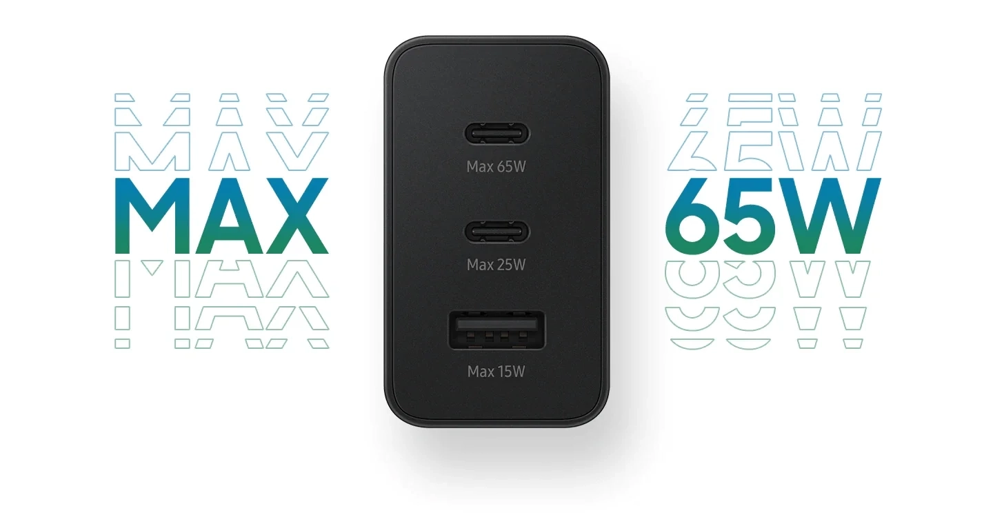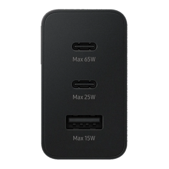 Описание Зарядное устройство Samsung 2xUSB-С 65W PD PPS/USB-A Black (EP-T6530NBEGEU)
