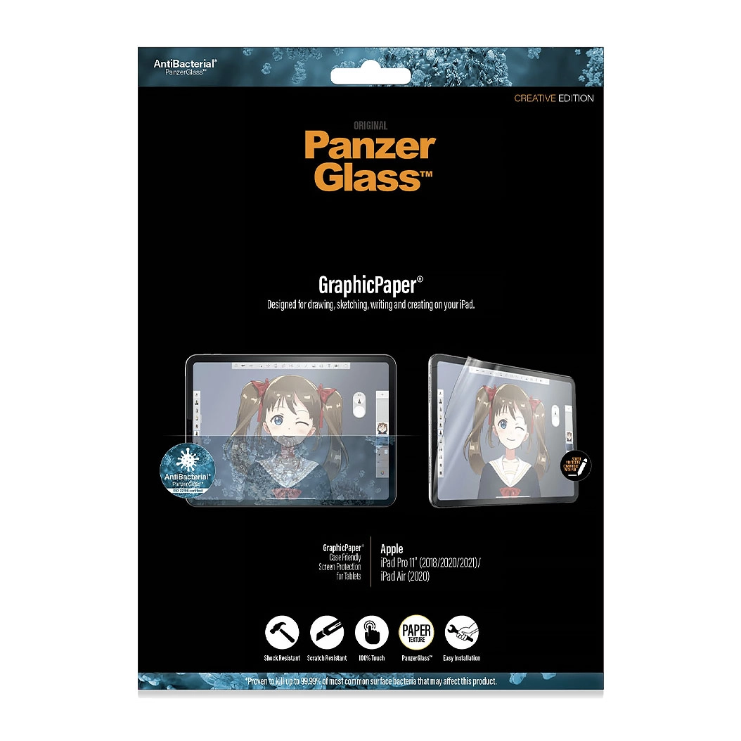 PanzerGlass GraphicPaper для Apple iPad Pro 11" (2018/2020/2021) и iPad Air 4 (2020), разработан для воссоздания текстуры бумаги и протестирован творческими людьми всех возрастов и уровней. Новое премиальное решение в виде бумажных защитных пленок для экрана. GraphicPaper идеально подходит для творческой работы, учебы, заметок, рисования, рисовать или просто для игры на iPad.