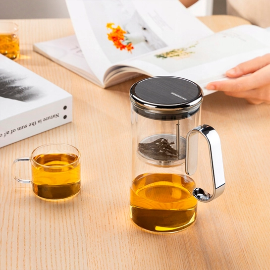 Чайник оснащен магнитом в крышке, что позволяет точно контролировать крепость заварки. Просто налейте чай в стеклянный фильтр, залейте горячей водой, и как только вы получите желаемый цвет, поверните крышку, чтобы мгновенно отделить заварку от листьев.